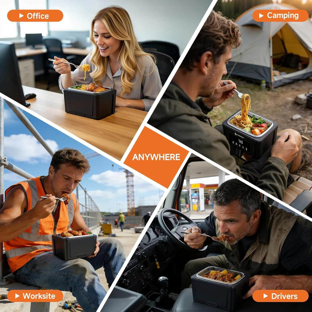 [5-SIDED ELECTRIC LUNCH BOX]Experience the innovative 5-sided heating feature that transforms the way your food is warmed. Unlike traditional lunch boxes that heat only from the bottom, this new design warms your meals from all sides. As a result, you won't have to deal with cold spots or burnt bottoms any longer. Your dishes will not only retain their flavor but will also taste even better, making your meals more enjoyable than ever!
